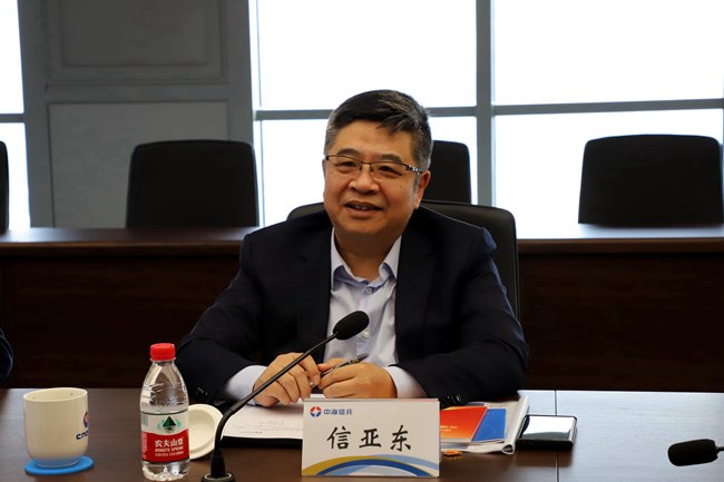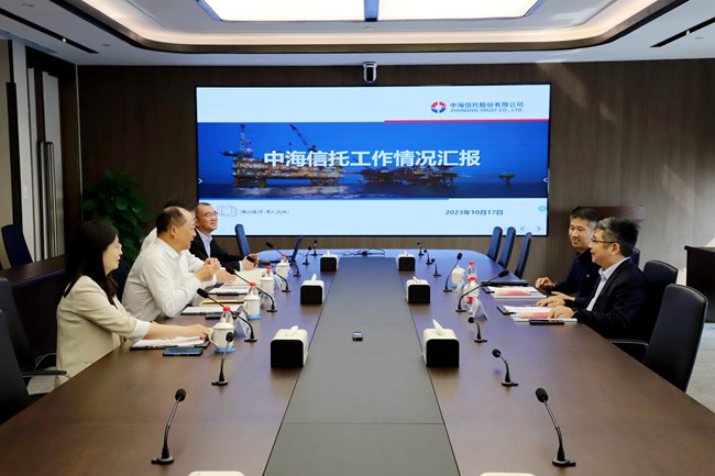 10月17日上午,上海市金融工作党委书记信亚东赴中海信托调研座谈。中海信托党委书记、董事长汤全荣,党委副书记、工会主席朱闻达及相关部门人员参加调研会。